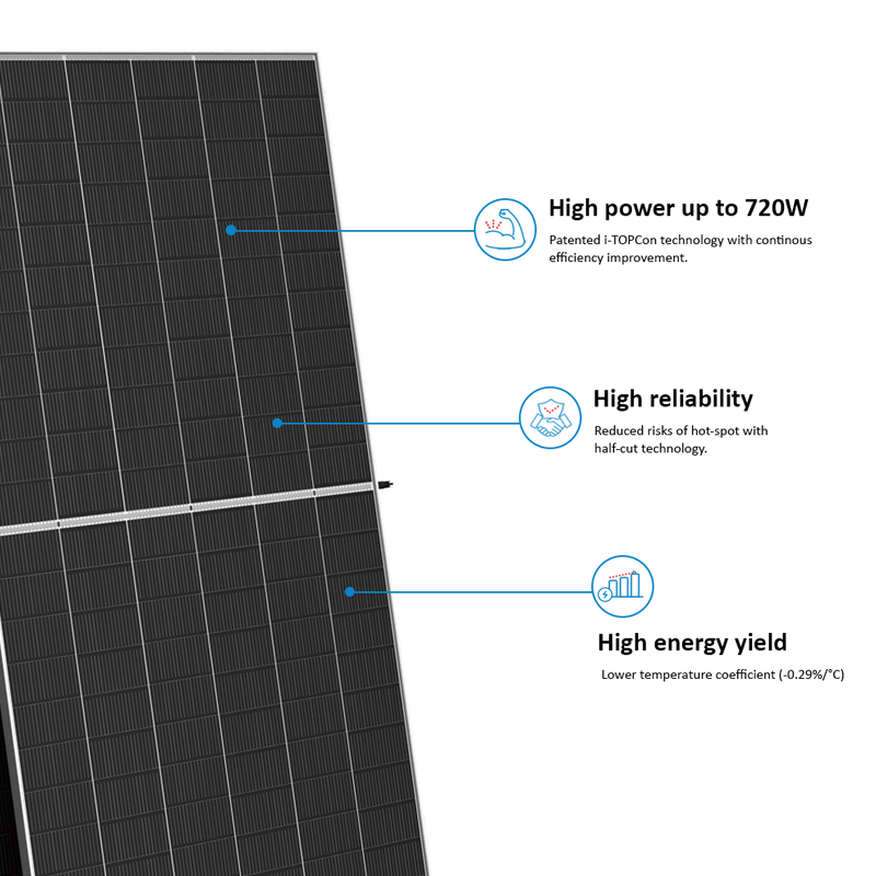 Panneaux solaires bifaciaux Topcon de type N.720W